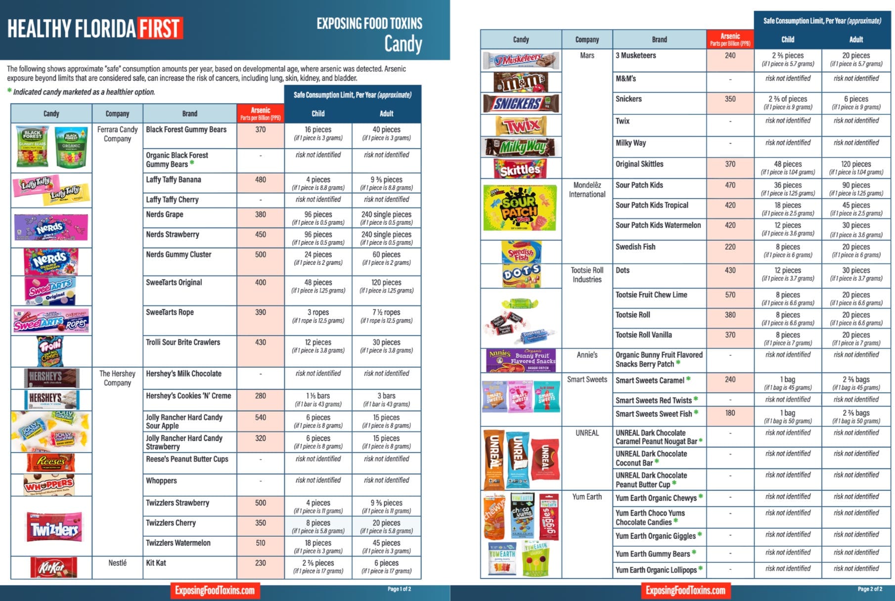Florida testing found SweeTarts, Snickers, Skittles, Kit Kat, Nerds, Sour Patch Kids, Twizzlers, Jolly Ranchers, Trolli, and Tootsie Roll among the worst offenders.