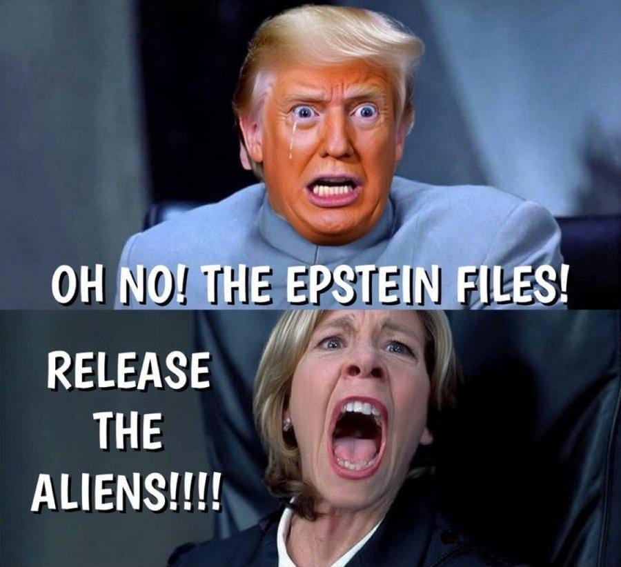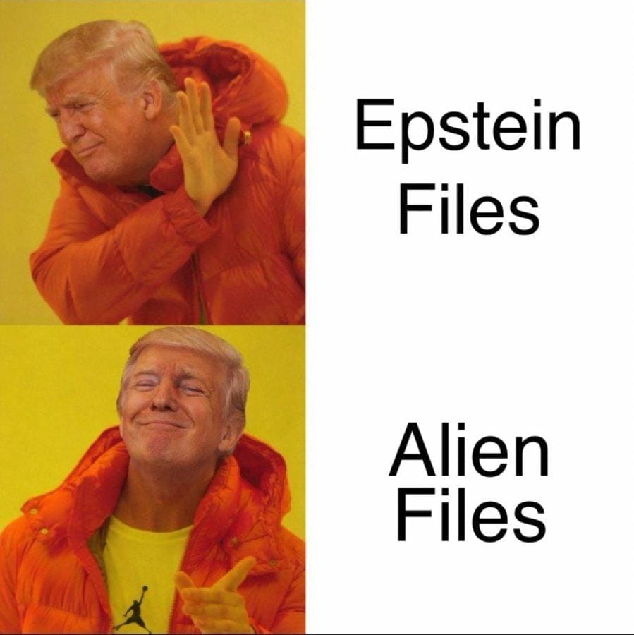 Is it a coincidence that the president is directing government agencies to release information about aliens exactly as public frustration over revelations in the Jeffrey Epstein files are boiling over? Is it a coincidence this is happening when pressure continues mounting on his Justice Department to release the three million files they’re illegally holding onto? Is it a coincidence we’re hearing about aliens just as the president is on the verge of making a unilateral decision to catapult the country into war against a struggling nation that poses no imminent threat to the United States?