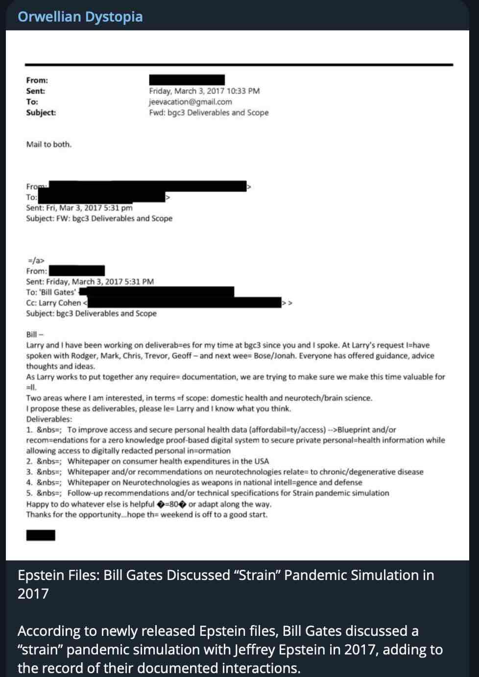 For context, Gonorrhea Gates the “global heath expert” was begging Epstein to supply him with antibiotics well over a decade ago…