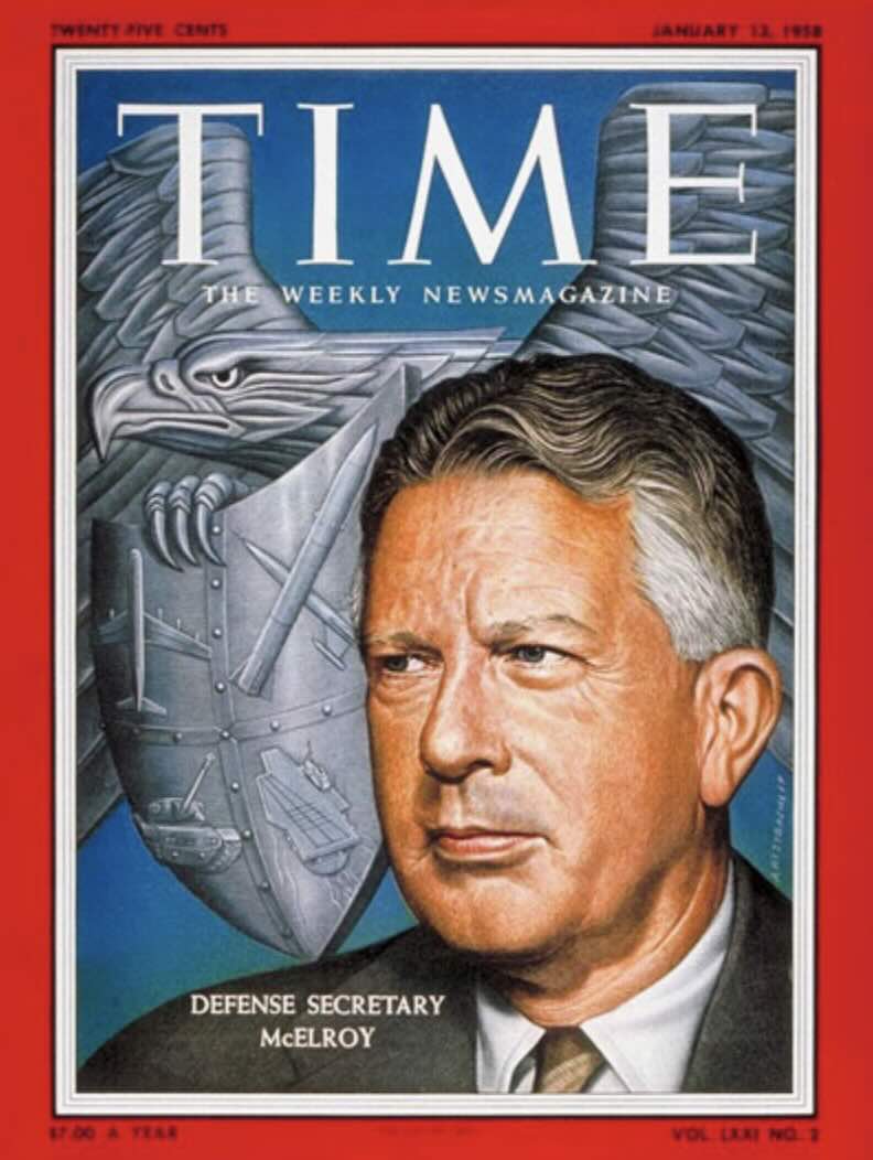 Here are two Time Magazine covers: One is of Neil McElroy of Proctor & Gamble, and the other one is of Neil McElroy, the Defence Secretary.