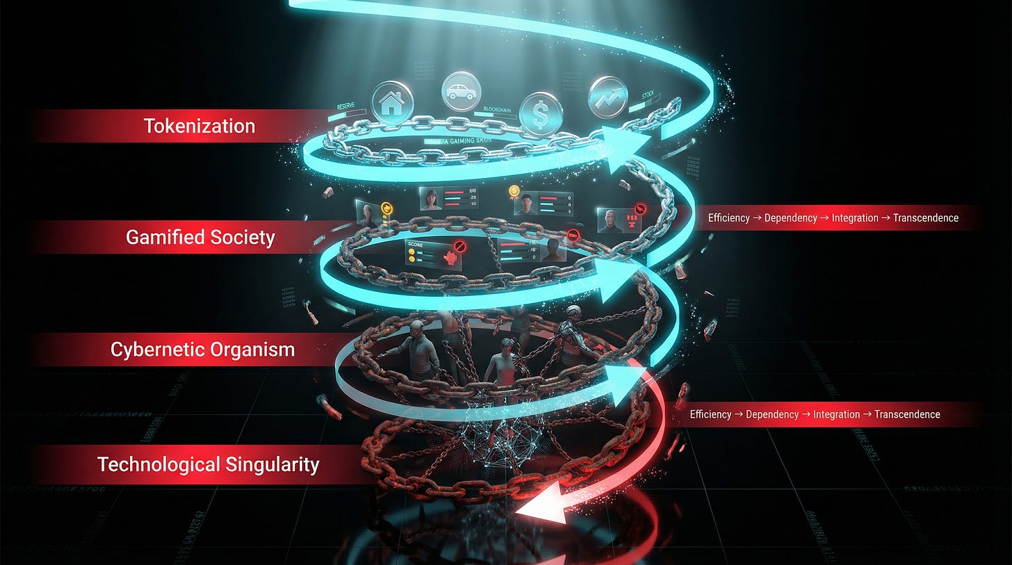 Tokenization is not merely a new tool for markets—it is the operating system for a post-human paradigm where sovereignty is replaced by managed participation, and free will is subordinated to algorithmic governance. The convergence of blockchain, AI, and biology is not inevitable progress; it is a engineered shift toward total control, sold as convenience and inclusion. If unchecked, it yields digitized feudalism where human agency tokenizes away. Reject the illusion—defend individual sovereignty before permanent encoding into the ledger.