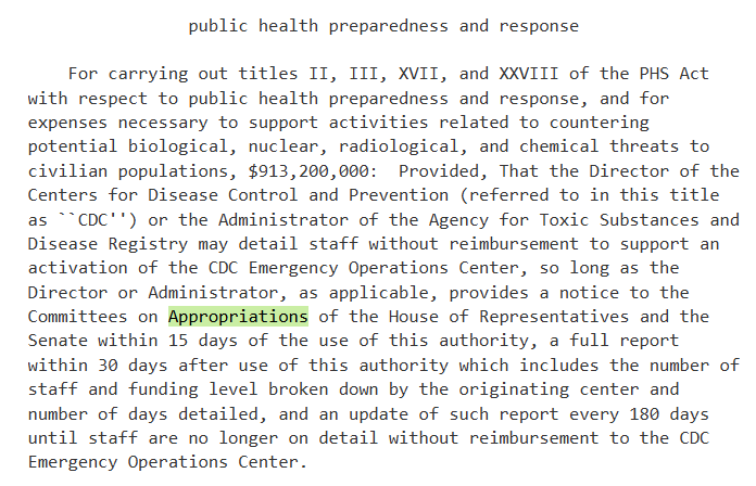 A chunk of that money is directed towards “prepar[ing] for or respond[ing] to an influenza pandemic” along with “the development and purchase of vaccines, antivirals, necessary medical supplies, diagnostics, and surveillance tools.”