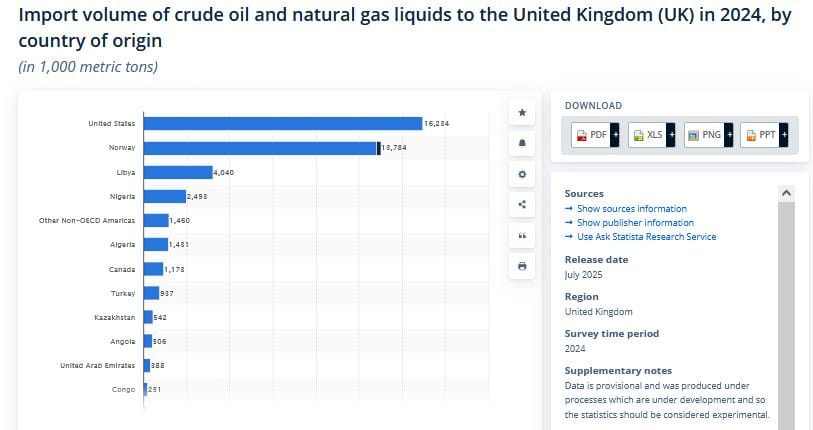 That means the UK gets nearly all of its' oil from elsewhere, so should never have any shortages linked to the restrictions in the Strait of Hormuz.